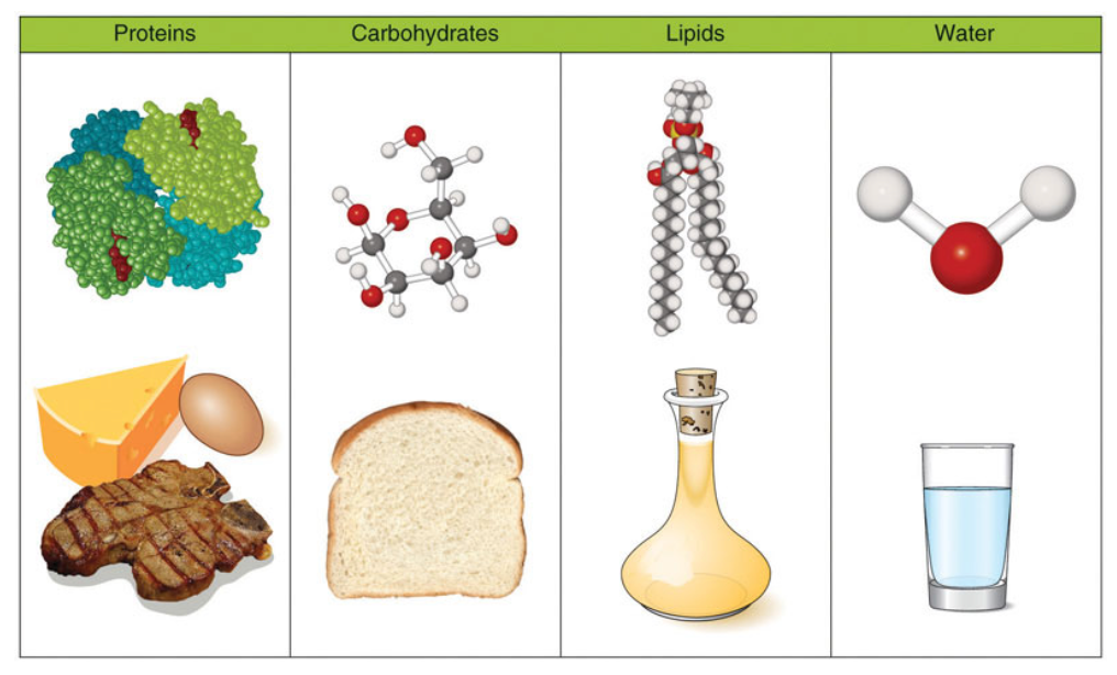 Figure 1.4 The Macronutrients: Carbohydrates, Lipids, Protein, and Water